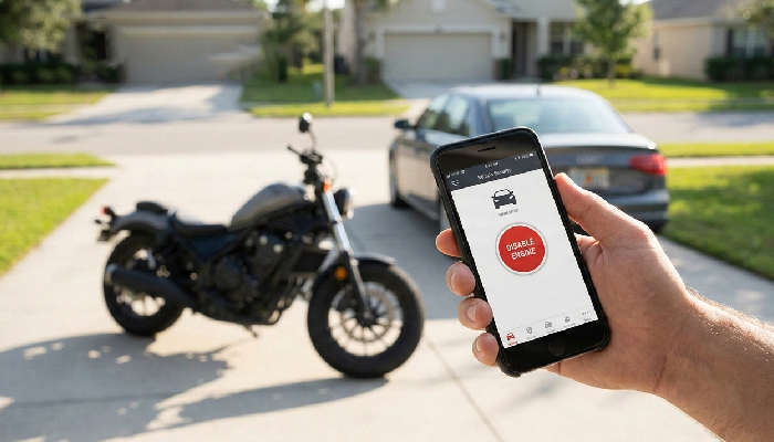 قابلیت خاموش کردن از راه دور که با نامهایی مانند Remote Cut Off یا Engine Cut نیز شناخته میشود، امکانی است که به کاربر اجازه میدهد از طریق پیامک یا اپلیکیشن، خودرو یا موتور سیکلت خود را متوقف کند.