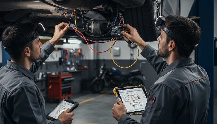 - ردیاب خودرو و موتورسیکلت در نوع سیمی، به سیستم برق وسیله نقلیه متصل میشود تا انرژی برق لازم برای عملکرد خود را تأمین نماید.